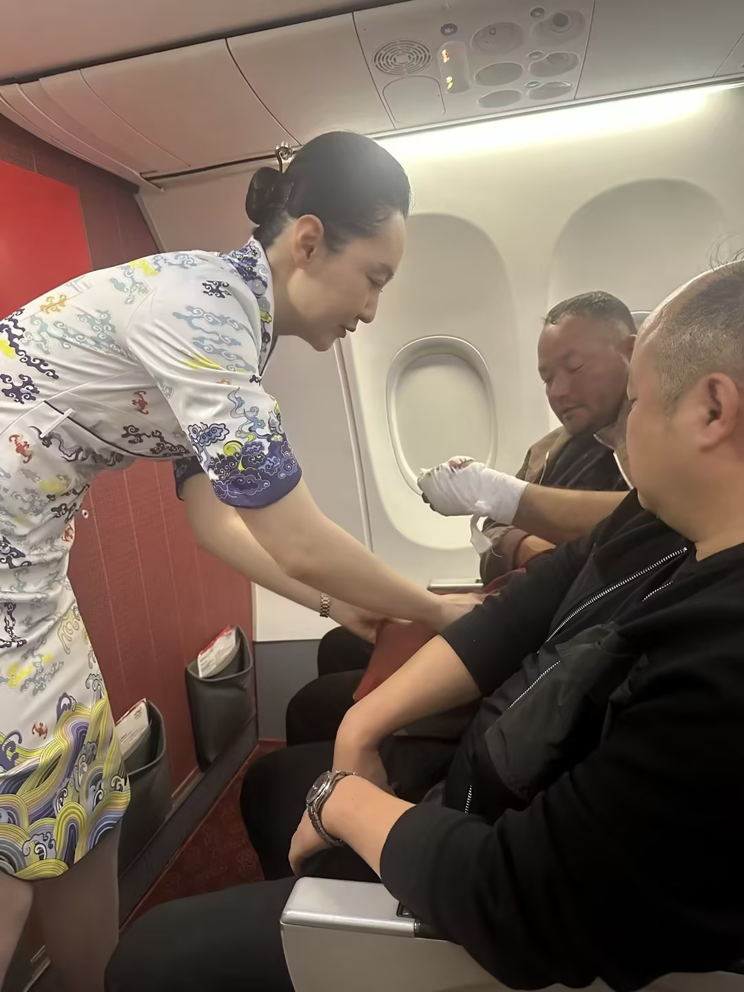 在空中,客舱服务部与航空安保部也全力做好全方位准备。乘务组提前为受伤旅客腾出前排宽敞空间,避免伤口受到碰撞或挤压。为了让旅客在紧张的航程中保持稳定状态,乘务员及时为旅客送上枕头和毛毯,不断抚慰与受伤旅客同行的家属,安抚机上其他旅客的情绪,以无微不至的关怀全程守护旅客的空中旅途。