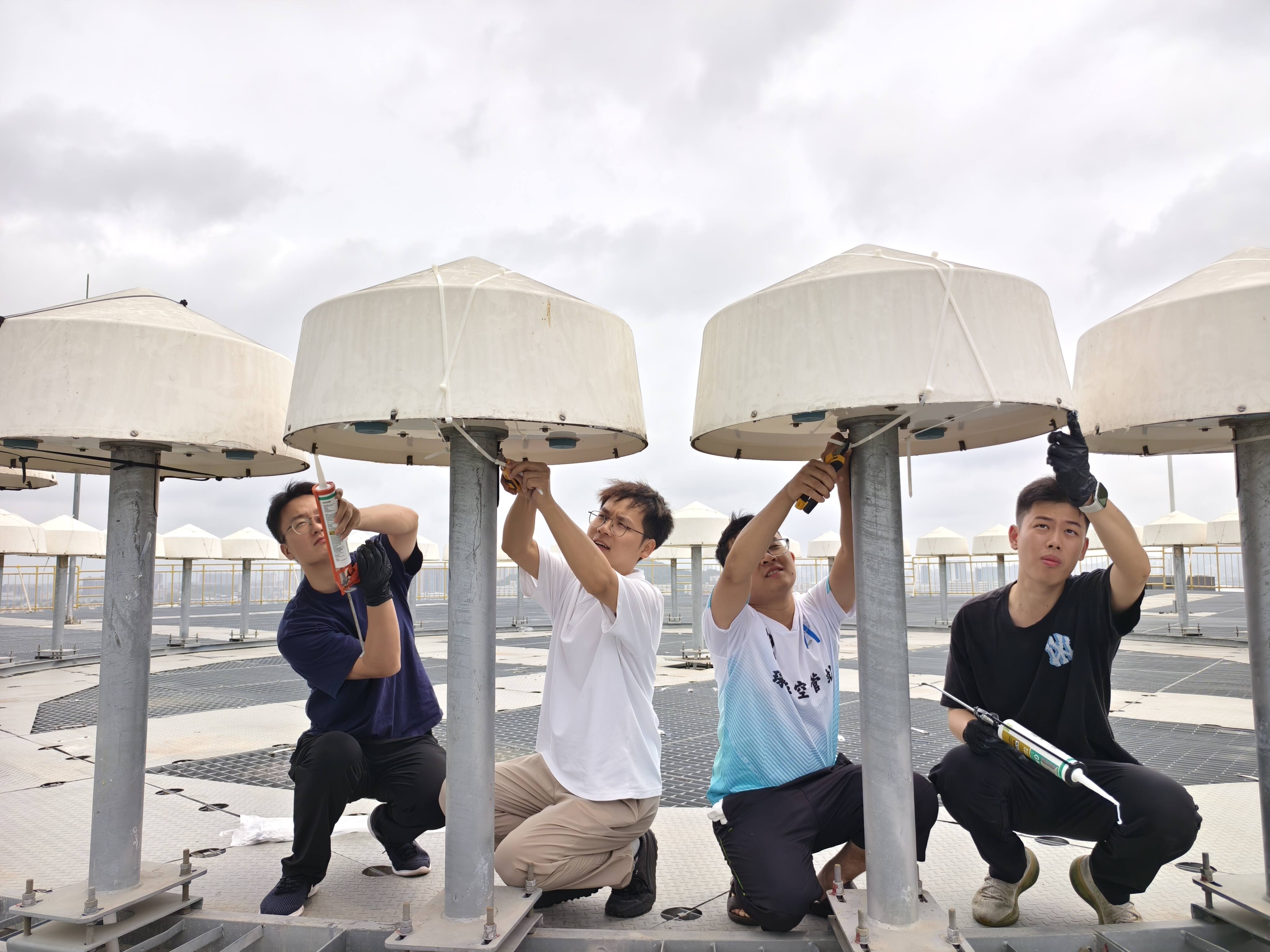 为确保此次年维护有序开展,珠海空管站技术保障部结合设备运行状况,制定精细化维护方案,并组织技术骨干充分研讨方案可行性,细化作业流程与分工。提前做好维护准备工作,备齐示波器、网络分析仪、功率计、频率计等测量仪器,打印维护表单及精细化指导材料。维护期间,技术人员严格落实精细化维护要求,全程执行“双人操作、交叉检查”,严防操作风险。工作中,技术人员分步骤、分模块推进深度维护:首先完成设备运行数据及配置的备份,逐一测量DVOR/DME设备载波频率、输出功率、波形等核心运行参数,通过与历史数据比对分析,设备各项运行参数处于正常范围。同时,利用维护停机测试,验证自研盲降、DVOR设备监控告警辅助系统功能,确保该系统能精准捕捉设备异常信号、及时发出告警提示,进一步完善设备监控保障体系。针对室外关键设施,技术人员在设备关机状态下,细致检查天线单元完好性,重点排查天线外壳接缝、线缆接口等易渗水部位,使用玻璃胶、泡沫填充剂进行严实封堵,做好防虫、防水防护;并逐一检查地网螺母紧固与防锈情况,保障设备优良电磁环境。此外,开展设备配套UPS系统及直流系统放电维护,使用内阻仪、万用表完成蓄电池参数测量,详细记录放电数据,对比放电前后数据,电池容量和性能均符合技术要求。维护最后,技术人员对机房、台站区域进行全面清洁,优化设备运行环境。