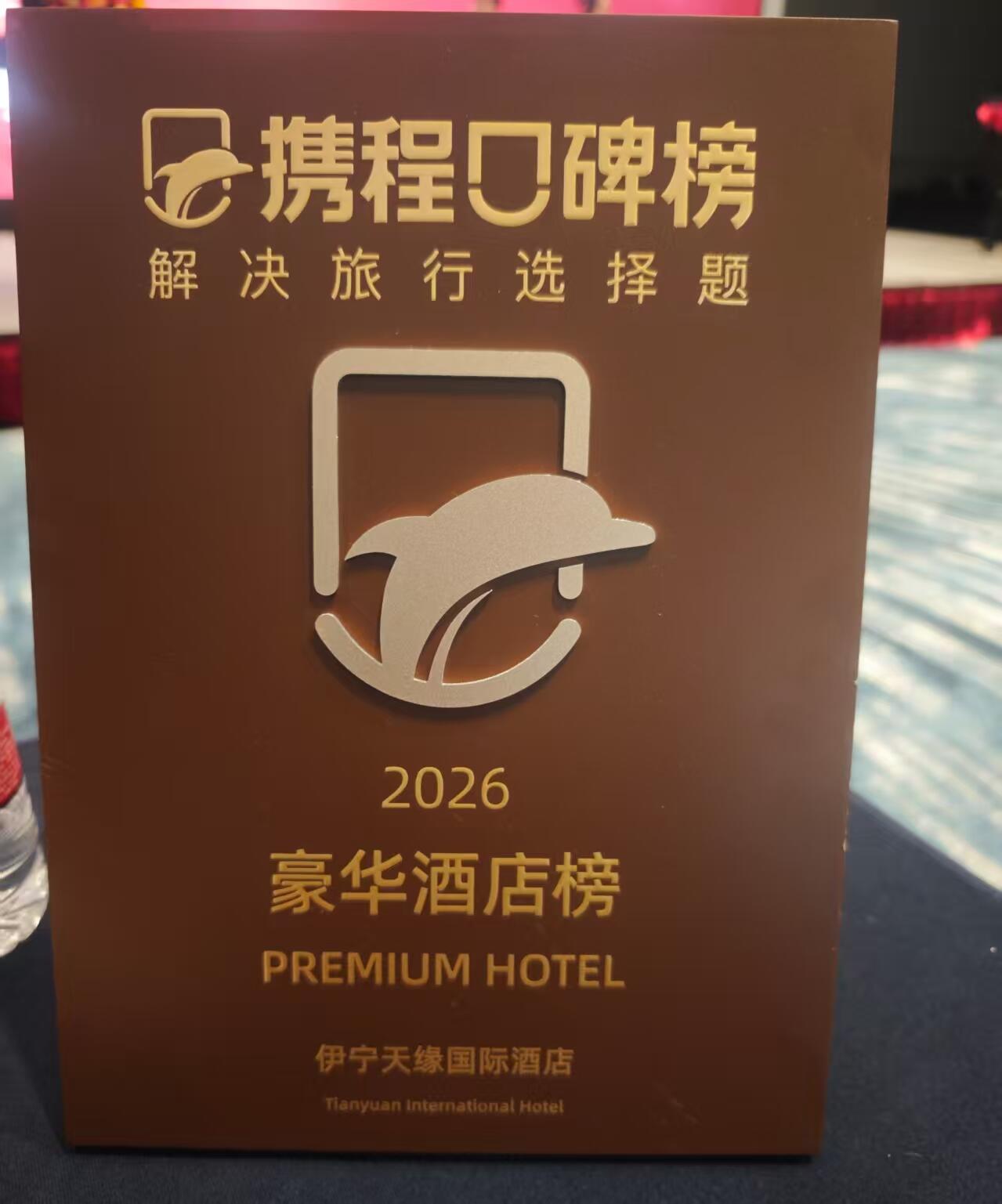 此次荣誉既是肯定,更是新的起点。未来,伊宁天缘国际酒店将继续深耕本地市场,不断提升服务品质与运营水平,以更优质的产品与更贴心的服务,为宾客打造高品质的旅居体验,助力伊犁文旅产业高质量发展。
