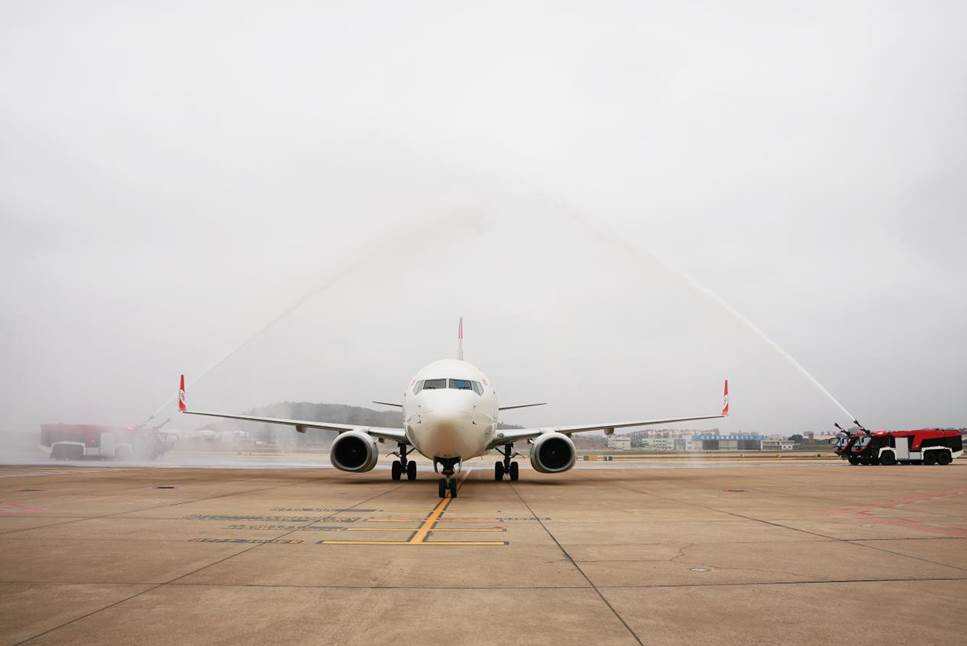 航线网络的密集拓展,离不开机队规模的坚实支撑。3月31日下午,一架注册编号为B-7377的波音737-800客机平稳降落在福州长乐国际机场,缓缓滑行通过象征民航界最高礼遇的“水门”,标志着福州航空机队正式迎来第17架飞机。此次引进的波音737-800客机采用全经济舱布局,共设186个座位。新飞机在完成入列手续及相关运行准备工作后,已于4月3日正式投入运行,重点服务福州主基地出港航线,为夏秋出行高峰提供坚实的运力保障。