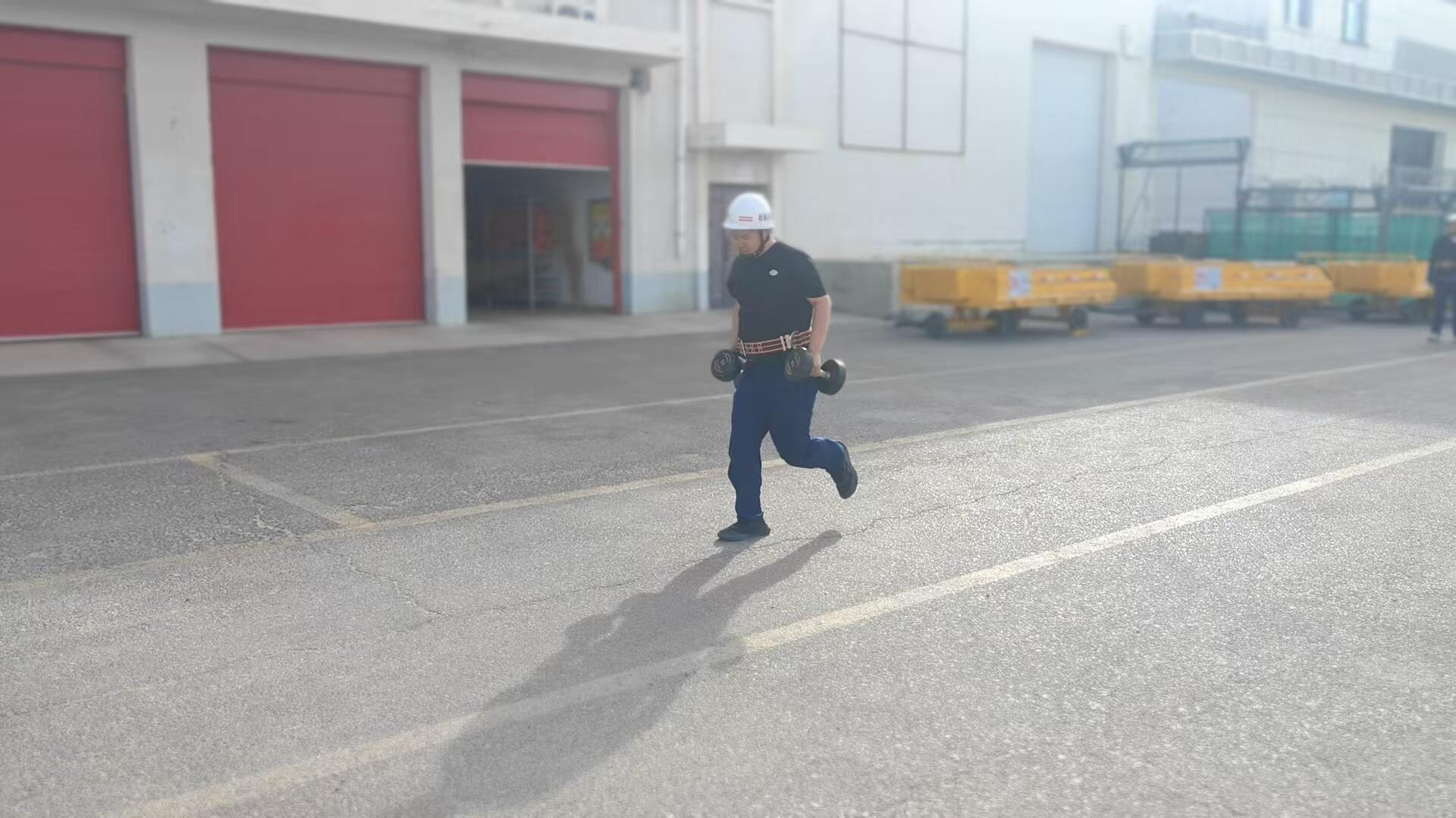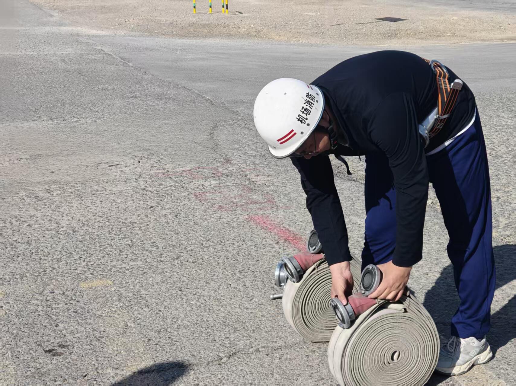 本次考核坚持“贴近实战、从严考核”的原则,内容涵盖业务技能与基础体能两大板块。在业务技能考核中,新员工们依次进行了原地佩戴空气呼吸器、40米负重折返跑、两盘水带连接以及原地着装等科目的比拼。