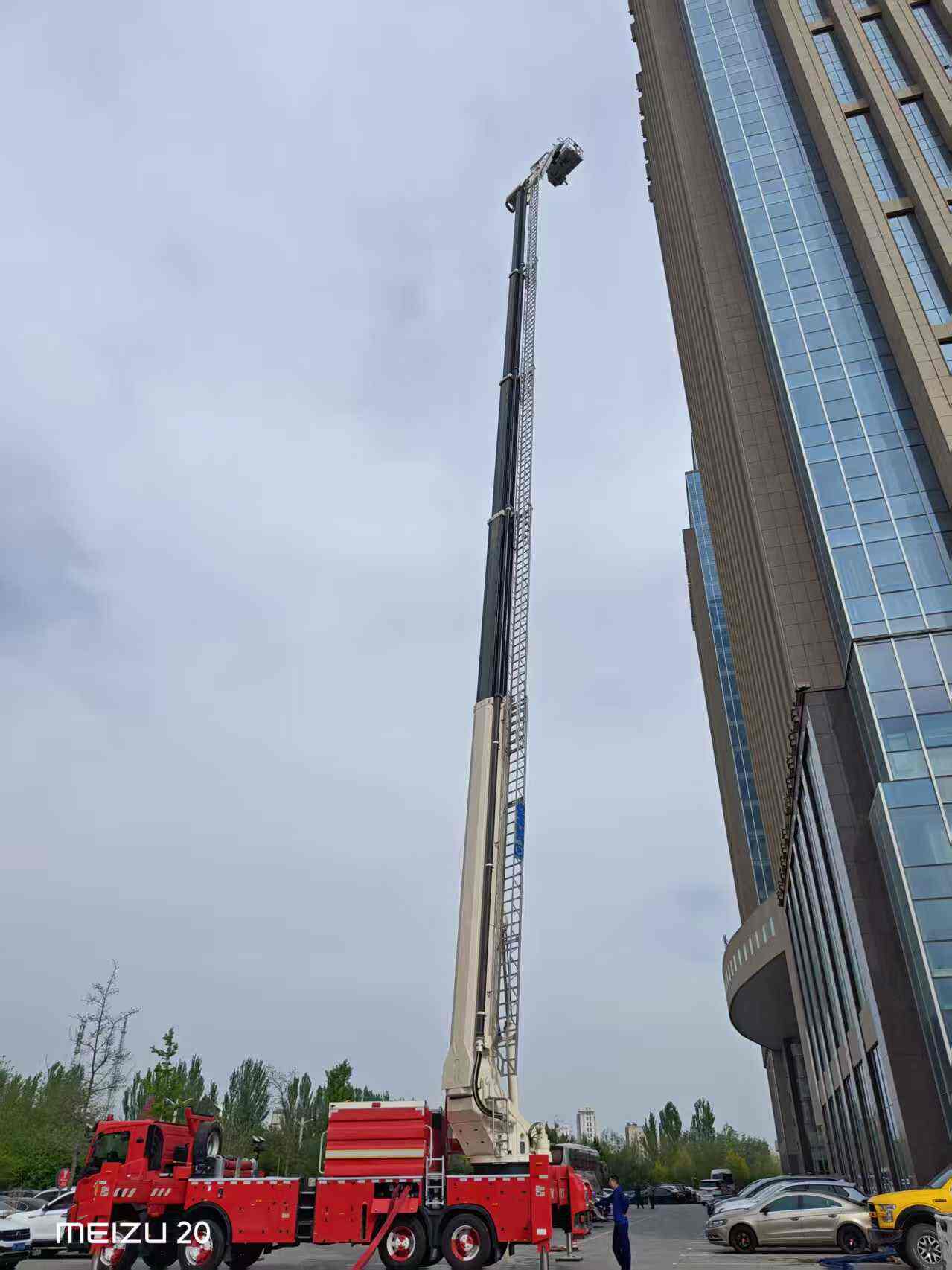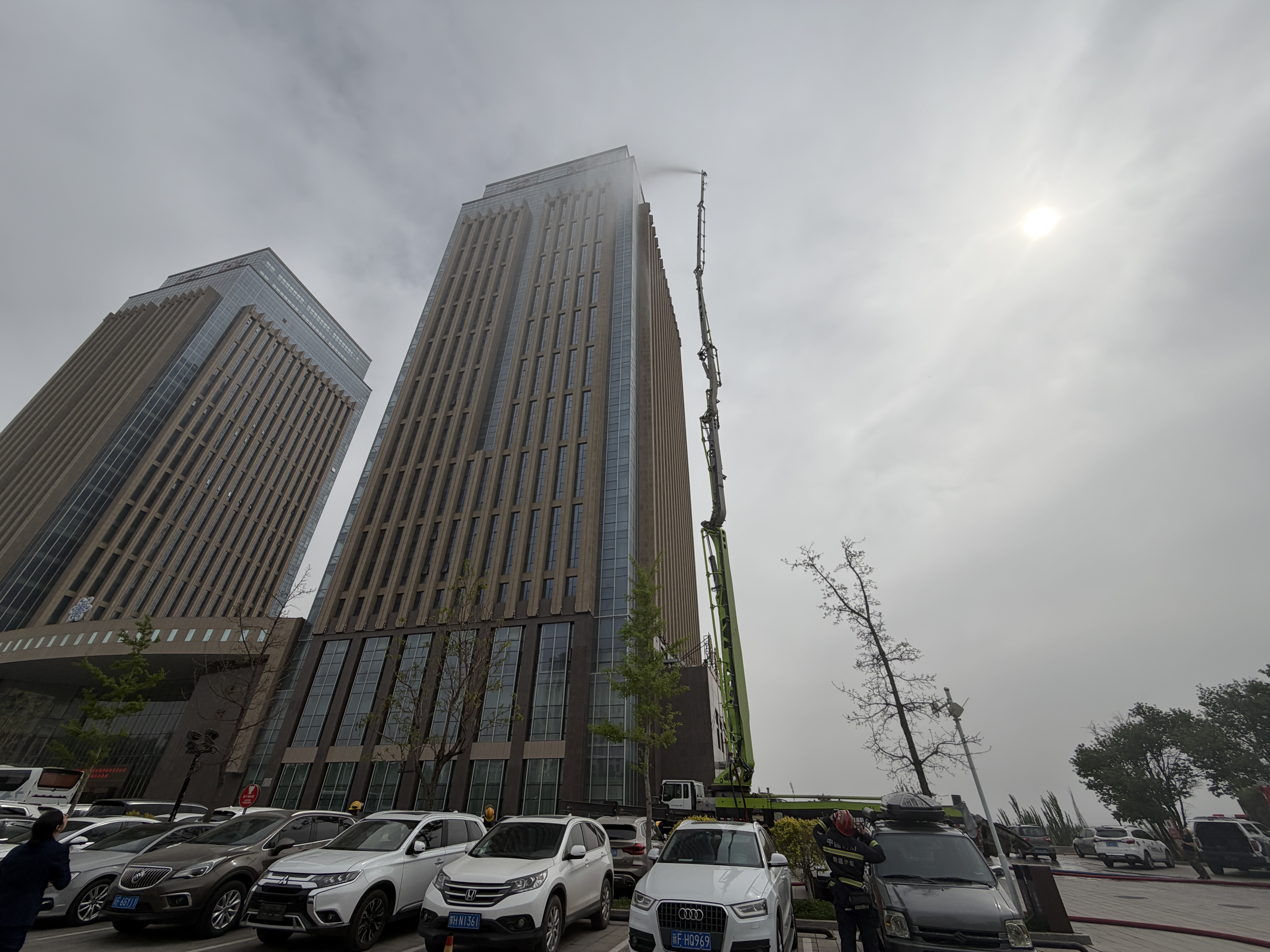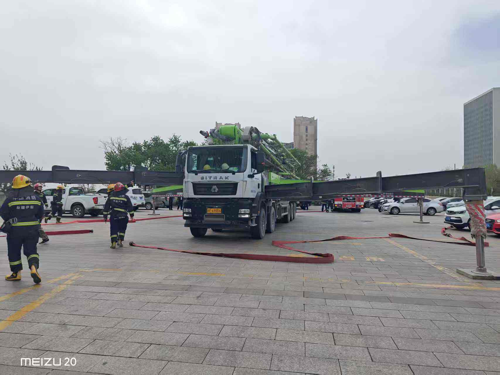 演练针对高层建筑火灾扑救难点,进行远程供水、高空灭火训练。伊犁州消防救援支队调度高喷消防车投入实战作业。演练过程中,消防指战员完成现场设备架设、水压调试、远距离供水、高空定点喷射等科目,水柱覆盖建筑高层区域。