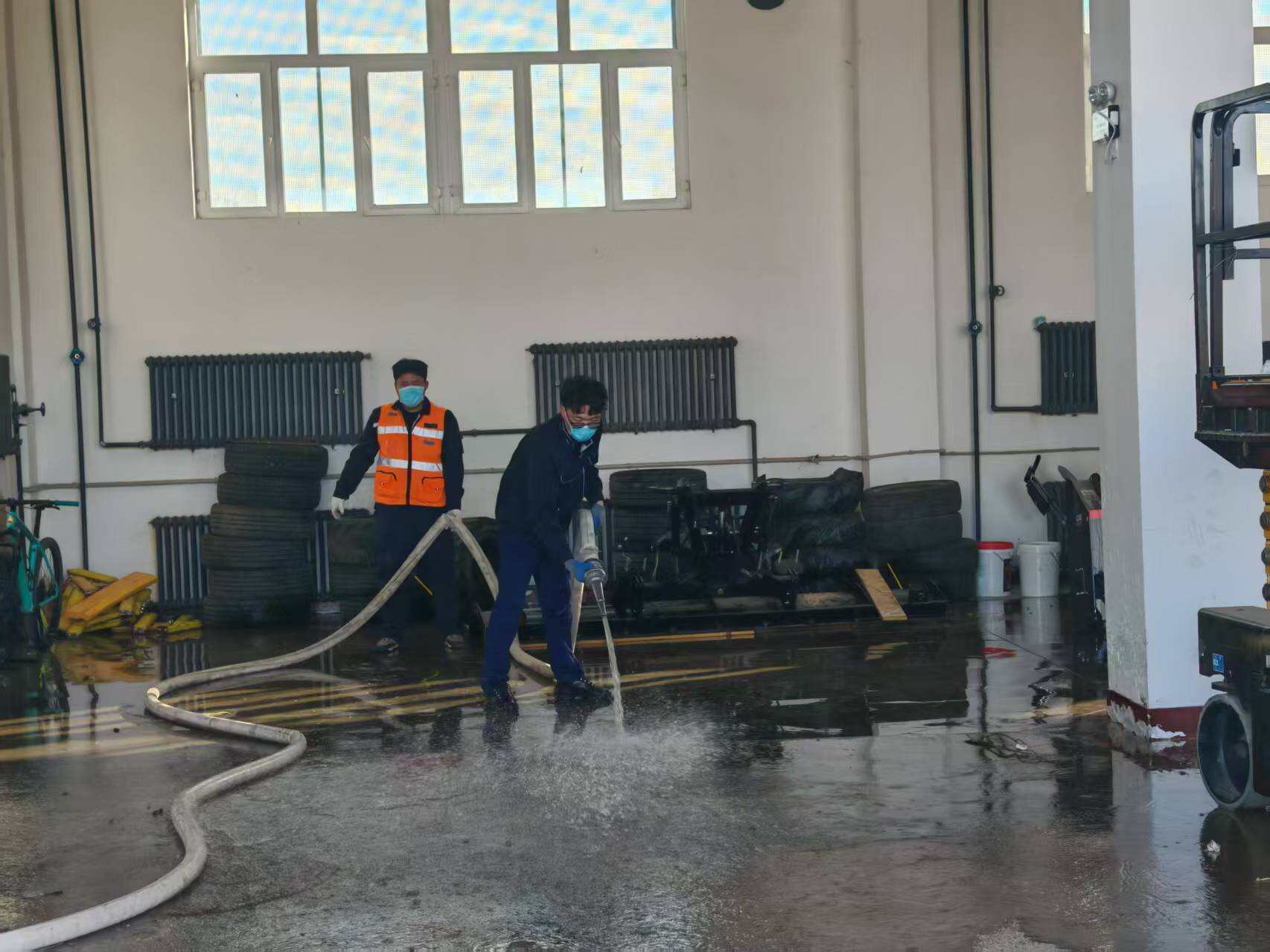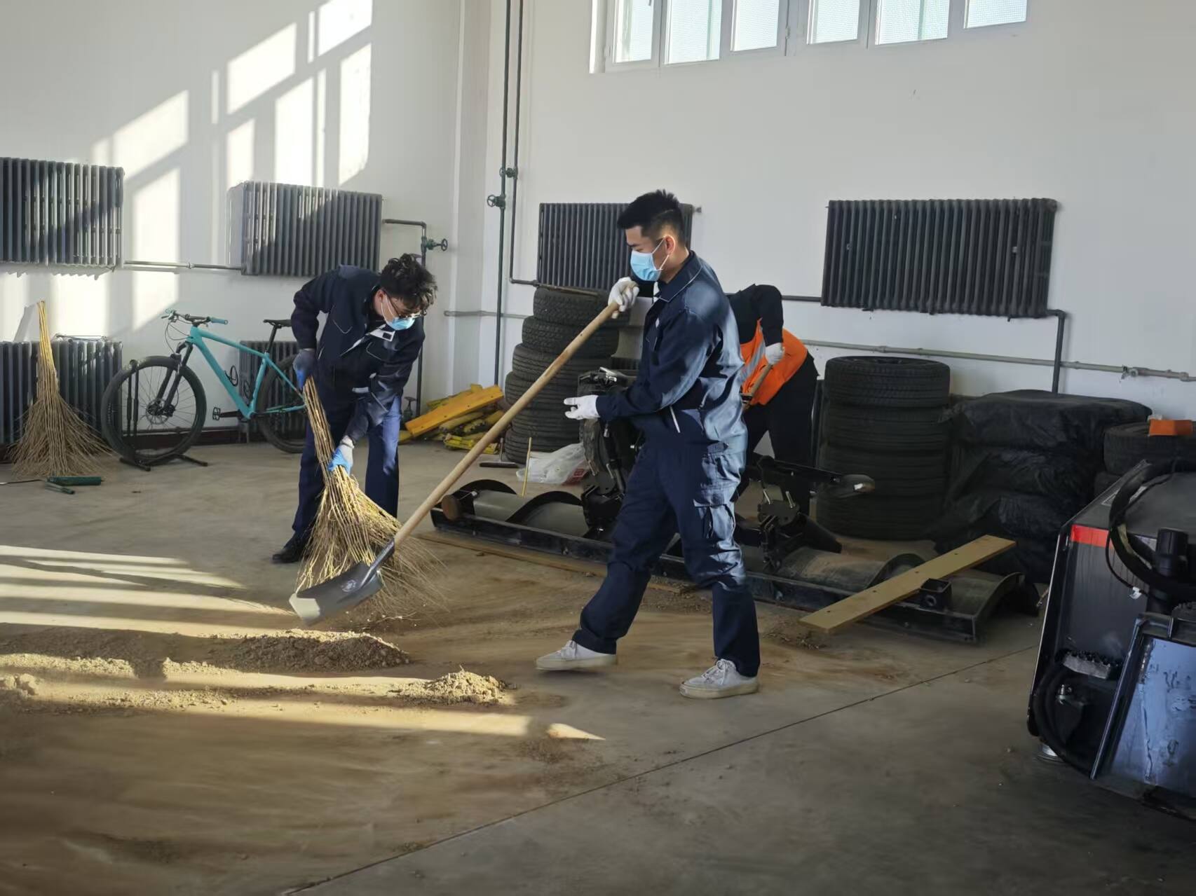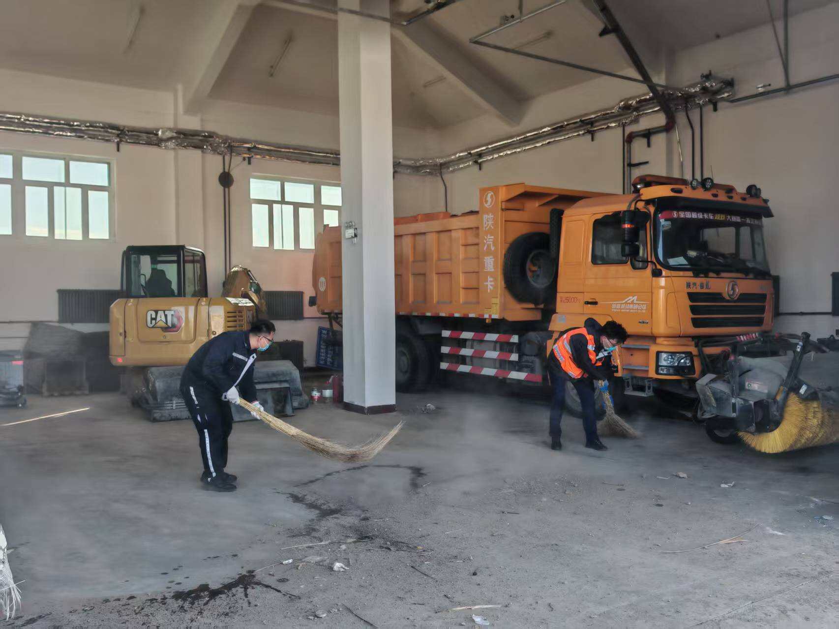 整治现场,员工们分工明确、协同作战,严格按照“全覆盖、无死角、清底子、彻整治”的标准推进各项工作。大家手持扫帚、铁锹、高压水枪等工具,对车库内的积尘、杂物、油污进行彻底清理,细致清扫地面散落的砂石与垃圾,全面规整轮胎、工具等物资,同步对作业车辆、机械设备进行清洁养护。从墙角缝隙到设备底部,从地面冲洗到物资归置,每一处细节都不放过,有效解决了车库内环境杂乱、卫生死角等问题。经过全员共同努力,行政车库面貌焕然一新,地面干净整洁、物资摆放有序、车辆停放规范,整体环境得到显著提升。