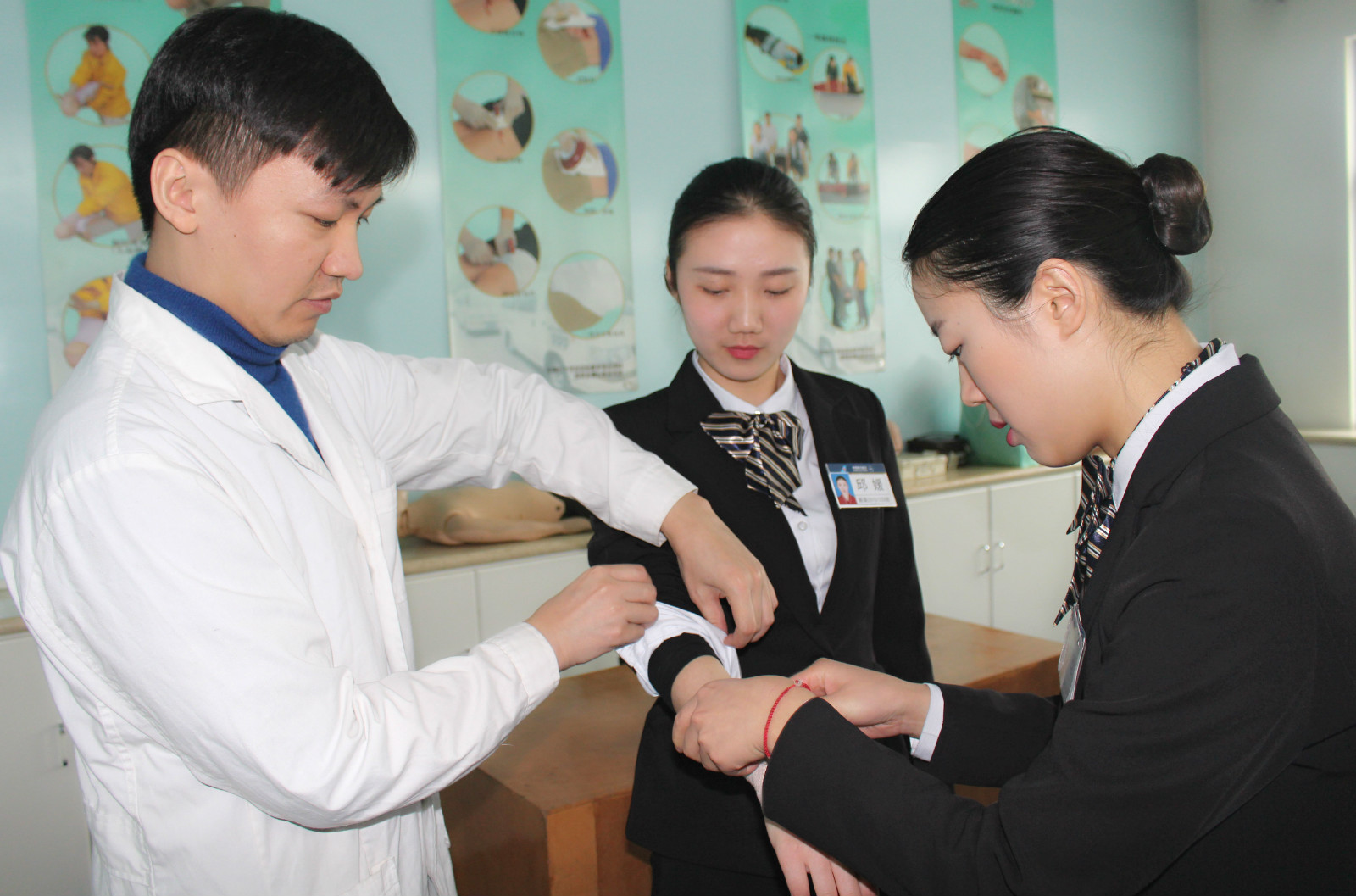 “请帮我通知机长、乘务长广播找医生,你拿急救箱,我先施救”客舱里,一名柔弱的空姐高声大喊。对,这是我们在上航空医学CPR实操课,通过航空医学课程的学习我才知道,机舱是一个密闭的空间,是一些病症的高发地带,并且由于高空环境的复杂,一旦乘客发病,往往会让病情更加严重,在发生这类紧急情况时,空姐需要冷静从容处理危机,并协助医生紧急救援。这不仅要求我们空姐拥有一定的医疗知识,而且还要有良好的心理素质,在优质服务旅客的同时,用自己所学到的医疗知识用心为乘客架起一道无形的保护伞,为旅客的快乐平安出行保驾护航。