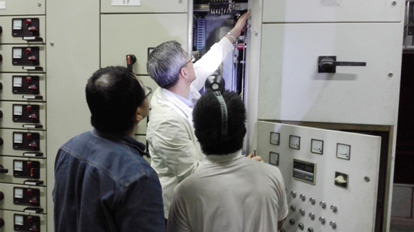 一切准备就绪,4月10日凌晨施工井然有序的开始。技保部主任、动力设备室领导亲临现场指挥,动力室值班人员一方面严密监视UPS的供电情况,另一方面与施工人员紧密配合。母线钻孔、电缆连接、互感器、电表安装。时间一分一秒的过去,当紧固完最后一颗螺丝已是凌晨四点了。“检测绝缘电阻正常”、“合闸,送电”、“检测输出电压正常”……随着一声声口令的确认,当晚的供电施工任务终于圆满的完成了。