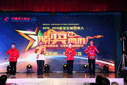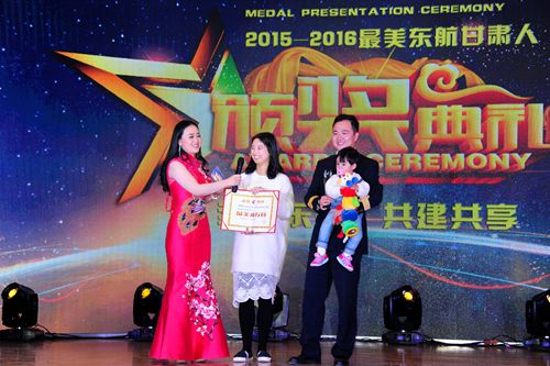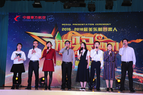 颁奖典礼上,甘肃分公司领导为各不同岗位的14位“最美东航甘肃人”、18位“最美东航甘肃人”提名奖获得者颁发了奖杯和荣誉证书。由东航甘肃分公司职工自编自演的舞蹈、三句半、小合唱等节目,精彩的表演为颁奖典礼增添了色彩,喝彩的掌声将颁奖典礼推上了顶峰。