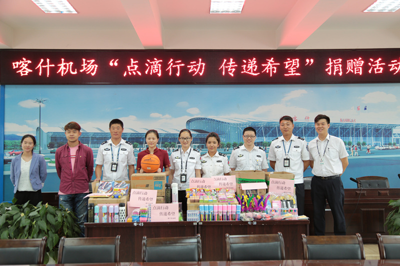 (通讯员 潘筱虹 杜娟娟 杨鹏)2016年5月11日,喀什机场举行了以“点滴行动 传递希望”为主题的募捐活动。此次活动是机场集团团委发起,为机场集团“访惠聚”活动所在地——巴什喀群村小学的孩子们捐赠文具和文体用品,喀什机场团委积极响应,号召全体员工积极参与,奉献自己的一片爱心。