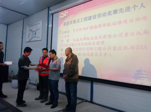 2016年5月6日,2015年度重庆市重点工程建设劳动竞赛先进集体及先进个人表彰大会在重庆江北国际机场T3A航站楼扩建指挥部举行。重庆机场建设项目部共有4人荣获劳动竞赛先进个人,其中民航二所物流公司重庆机场T3A航站楼行李系统项目经理刘涛获先进个人。