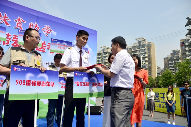 扶贫助学”的全省“绿丝带”爱心送考活动举办启动仪式。此次活动将延续近3个月的时间,东航安徽分公司作为活动的支持单位与安徽省文明办、安徽省公安厅交警总队等单位一起,全方位参与到活动的开展当中。
