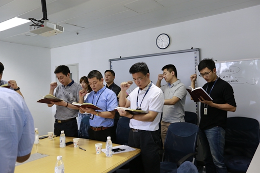 党课进入尾声,党员们集体起立、高举神圣的右手,庄严地重温入党誓词,为此次微型党课画上了圆满的句号。