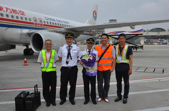 2016年6月29日12时53分MU2040首尔--青岛航班平稳地降落在青岛流亭国际机场,青岛飞行部一分部机长胡旭东顺利完成单飞任务,也成为青岛飞行部首位单飞时执行国际航班的机长。青岛飞行部领导和同事到机坪迎接机组,祝贺胡旭东机长单飞成功。青岛飞行部在2016年旺季即将来临之前,圆满完成了上半年新机长单飞工作,为公司旺季生产增添了新生力量。