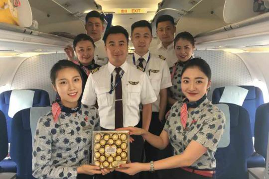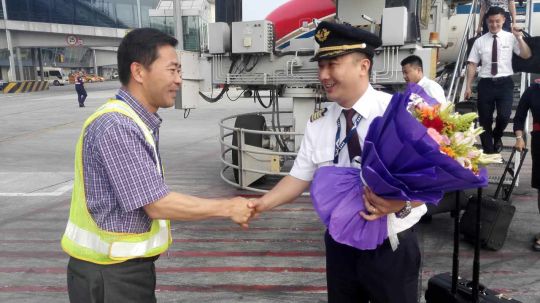 机组出发前,山东分公司副总经理李德强和青岛飞行部干部专程为机组“壮行”;在乘务长罗彬的组织下,客舱的同志们与吴宏伟机长合影留念,在飞行前为机长鼓劲;单飞落地后,分公司副总经理李德强、青岛飞行部总经理贾洪义带队前往机坪迎接单飞机组,为机组送上了鲜花和掌声。