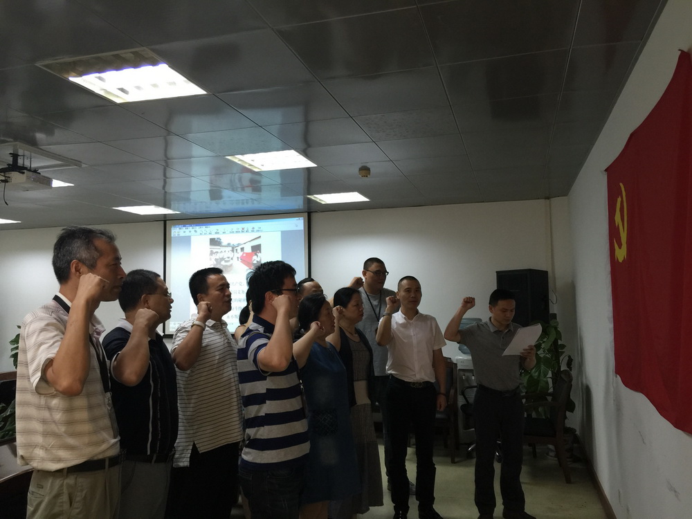 会议首先进行了党课学习。结合“学党章党规、学系列讲话、做合格党员”的精神,开展了对“党的历史,党章的发展”为主题的学习教育,激励广大党员讲政治、有信念,讲规矩、有纪律,讲道德、有品行,讲奉献、有作为。党课结束后,后服中心党支部全体党员面对党旗,重温入党誓言。