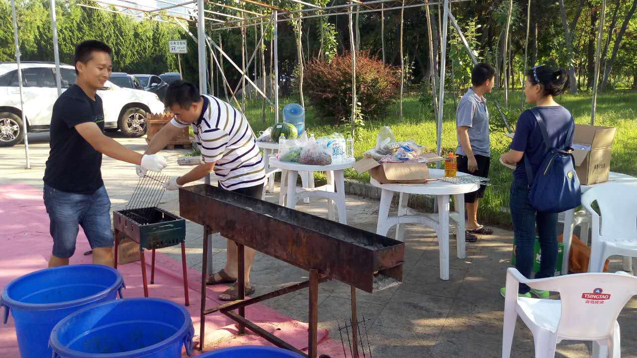 图1:大家齐心协力开始烧烤的准备、摆放食材
