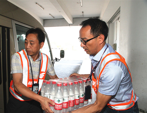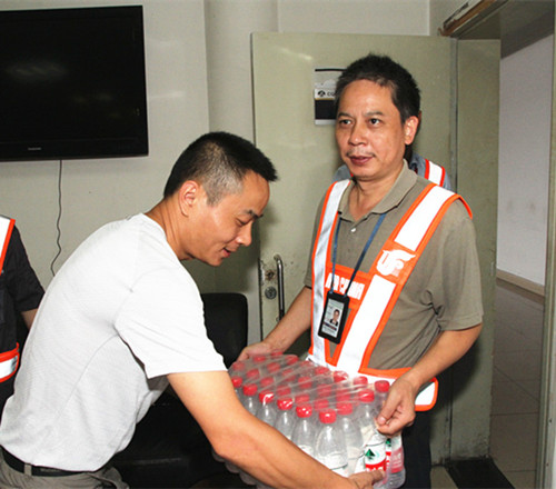 Ameco重庆分公司领导对一线高温酷暑下工作的员工身体健康高度重视。为给员工消暑降温,给一线“送清凉、送关爱”,从8月15日开始,分公司高级经理淦江、党委书记唐坤平等分公司领导,带领工会、党群及机关科室干部每天将几十件矿泉水、清凉饮料、十余件冰糕送到各车间广大一线员工、职能科室值班人员的手中,送去了对奋战在高温旺季一线员工的问候。