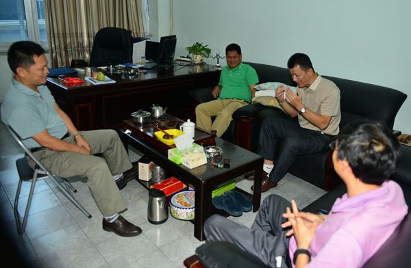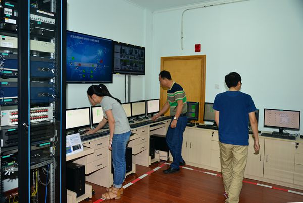 冼志强副站长(后排一)与一线部门领导研究防台抗台工作