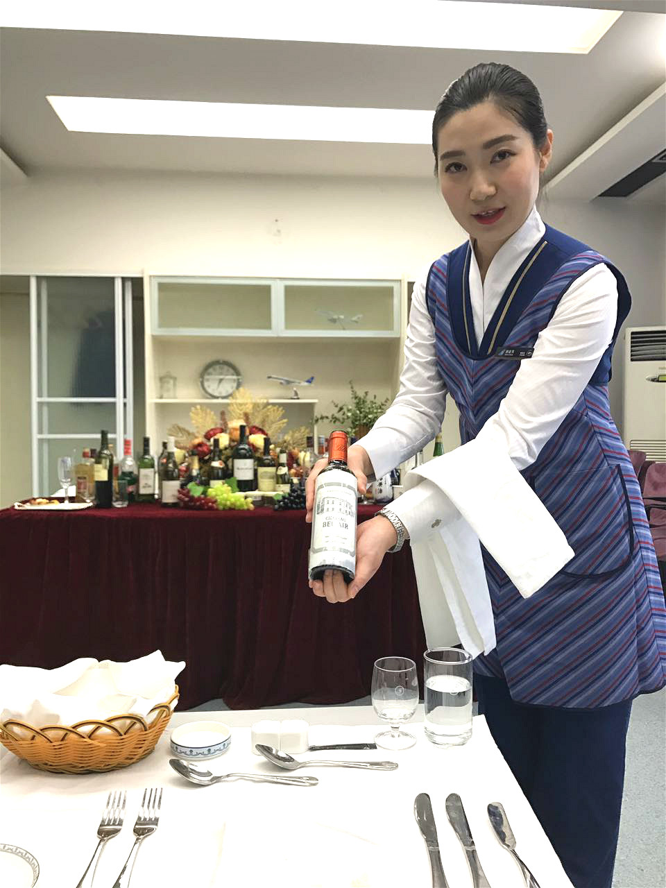 业务能力素质测试中的《公司报告解读》、《客舱领导力》以及在新疆航空食品有限责任公司现场学习的《美食文化》等课程则成为培训创新亮点。模拟舱服务展示环节,紧贴空中服务一线岗位实际,由培训教员扮演旅客模拟场景,乘务长们在模拟中即兴作答,在规定时间内做好在对标服务基础上融入服务产品的演绎服务,其中在用英语进行服务产品的介绍和旅客的沟通中,不仅要求乘务长要语言流利发音准确,更要求注意语速和与旅客之间的交流及表达水平。