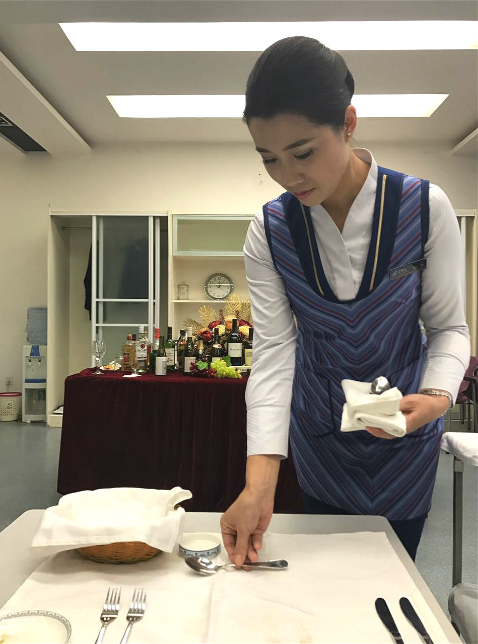 五星乘务长培训较其他乘务类的培训有所不同,课程涉及《公司报告解读》、《客舱领导力》、《茗茶事典》、《葡萄酒文化》、《美食文化》、《四/ 五星服务程序及标准差异》,在培训内容、培训形式、培训考核上采取多项创新,以严格的标准突破以往单一的授课形式,设计了新颖实用的业务能力素质测试、模拟舱服务展示等环节来考察这些乘务长的综合素质水平。