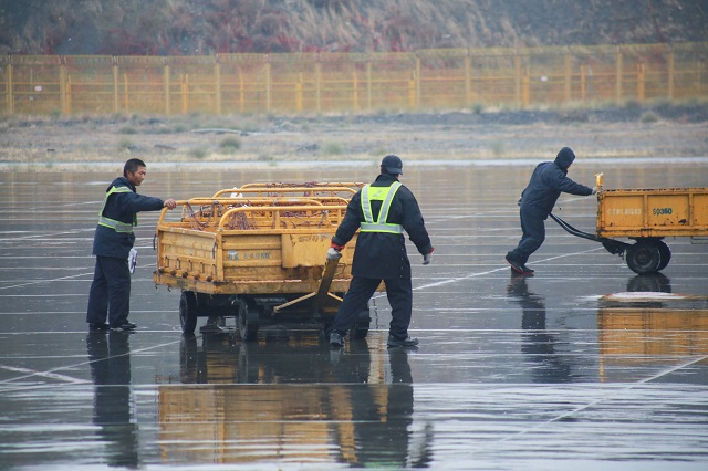 19日凌晨起,乌鲁木齐机场开始降雨,12时左右开始出现雨夹雪天气。工作人员介绍,降雨一般不会对航班运行造成影响,当出现冰雪天气时,工作人员将根据手册规定对飞机进行除防冰作业。