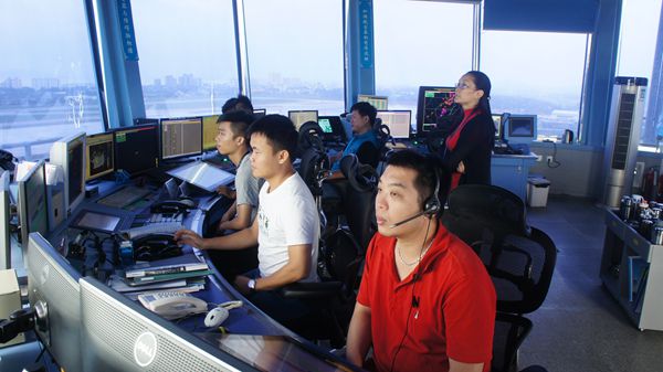 10月19日,强台风“莎莉嘉”刚过,三亚空管管制指挥员有条不紊,投入紧张的保障工作中。