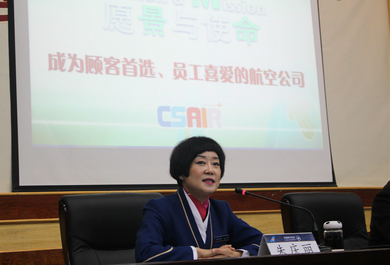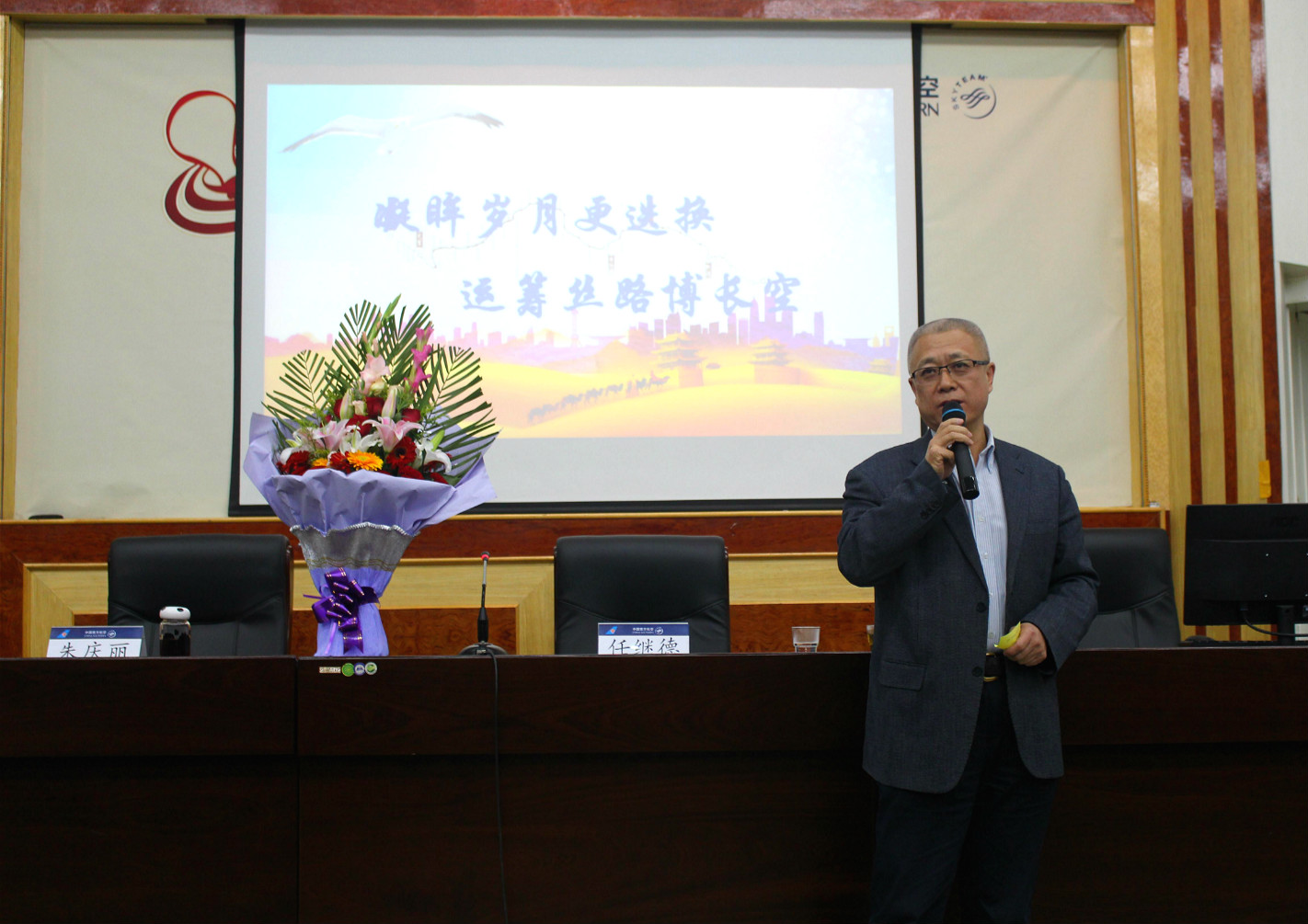座谈会上,原民航乌鲁木齐管理局副局长、原新疆航空公司副总经理任继德和新疆民航劳模、南航新疆分公司乘务长朱庆丽和新乘学员们进行了亲切座谈。说起往昔岁月,任继德首先给新乘学员们讲述了南航新疆分公司的历史沿革和早期创业的艰辛和不易。尤其是当年新疆民航湿租飞机的举措,开创了中国民航以湿租形式引进运力的历史先河,让同学们听的津津有味。而作为从1985年就开始飞行的资深乘务员朱庆丽和大家分享了31年来飞行时的经验,以及面对形形色色旅客时职业的心态和谨记的职责,这让同学们更加生动了解了今后所面对工作,体会到了肩上的重任。