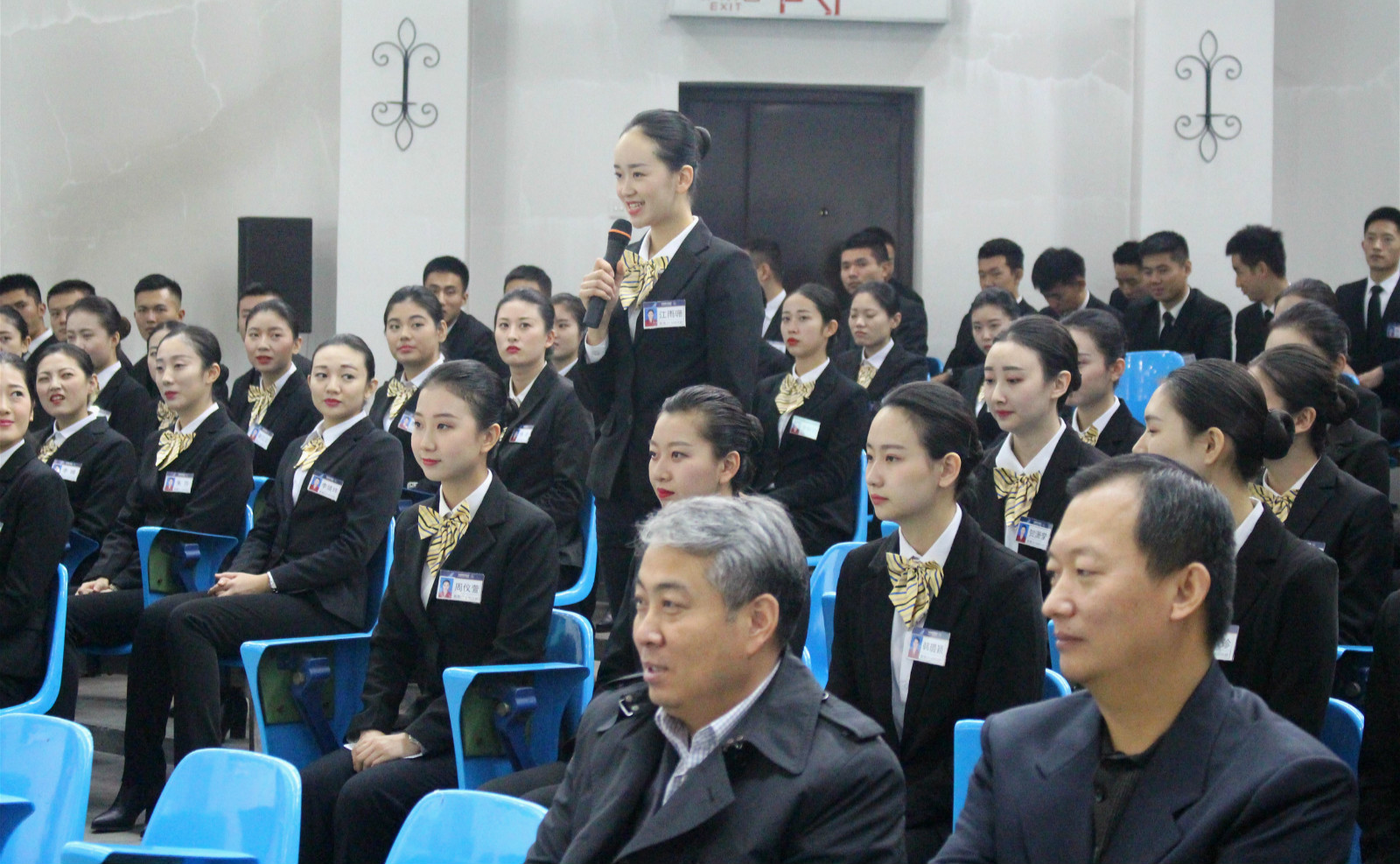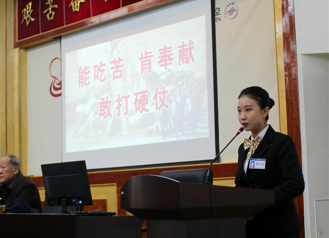 互动环节座谈会气氛更加热烈,新乘务学员张凯皓问道:“南航有今天的发展离不开前辈们辛勤的汗水和付出,薪火相传,致敬前辈,都说各行各业的老前辈们是后来者的方向指示灯,想问前辈在民航的发展历程中是如何对后辈进行传帮带的?”这个问题让两位老前辈打开了话匣子。现如今,新乘务学员即将走入的都是737、190等先进机型的飞机,而在过去,乘务员们面对的机型比较古老,工作的客舱狭小,容易出现缺氧等各种情况,脚上穿的也是部队发的大头皮鞋。冬天很冷的时候,20个乘务员相拥取暖,而新疆的民航事业就是在老一辈新疆民航人日复一日的默默奉献和努力拼搏中取得了安全飞行61年的骄人成绩。听了前辈的回答,张凯皓表示,作为一名新乘学员,和前辈们近距离、面对面的交流是人生中很宝贵的财富,对2个月之后进入空乘岗位有很多帮助,相信自己会很快融入南航的大集体。而在回答新乘务学员江雨珊问的“职业的崇高使命和责任”的问题时,任继德也说道今年是长征胜利80周年,希望同学们能继承长征精神,不断拼搏进取,奋进正当时。