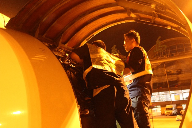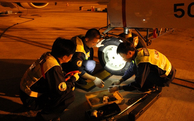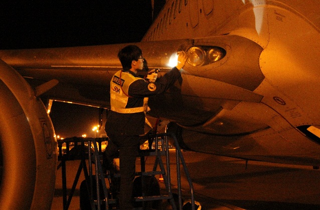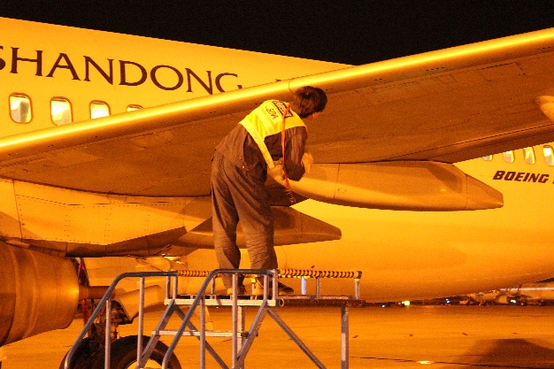 图3:机械员正在对飞机进行全面、详细的外部检查