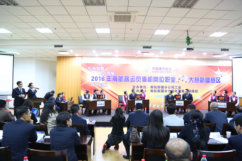 (通讯员:杜敏、冯茹、刘珊)2016年10月27日上午11:00,由南航新疆分公司主办、南航新疆分公司地面服务保障部(简称:地服部)承办的“专业有素、高效有能、阳光有爱”南航客运员值机岗位职业技能大赛新疆赛区决赛拉开帷幕。