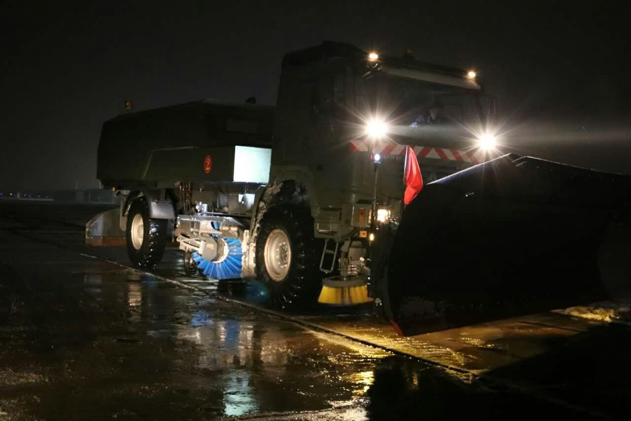 22时,气温已降至临近冰点,军民航迅速出动4台热吹车联合作业,截至31日1时,经过8个小时的连续奋战,共出动除冰雪设备13台次,冷吹车、热吹车交替作业,共消耗航空煤油9850升,全面完成了对跑道、滑行道、机坪除冰雪工作。在除冰雪作业的过程中,场务员杨延良发现B号联络道道面破损,将此情况报告给值班经理。待除冰雪设备入库后,场务员立即进行抢修,历时1小时抢修完毕,为航班正点提供了安全保障。