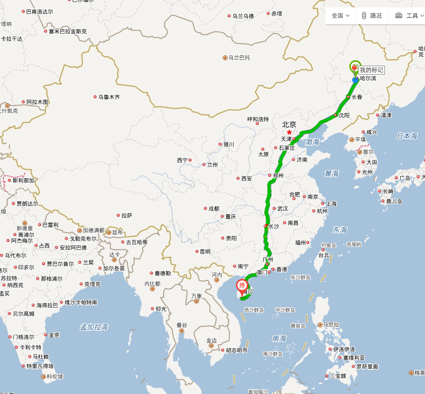 两个城市相距4153公里,空中飞行时间5小时20分。