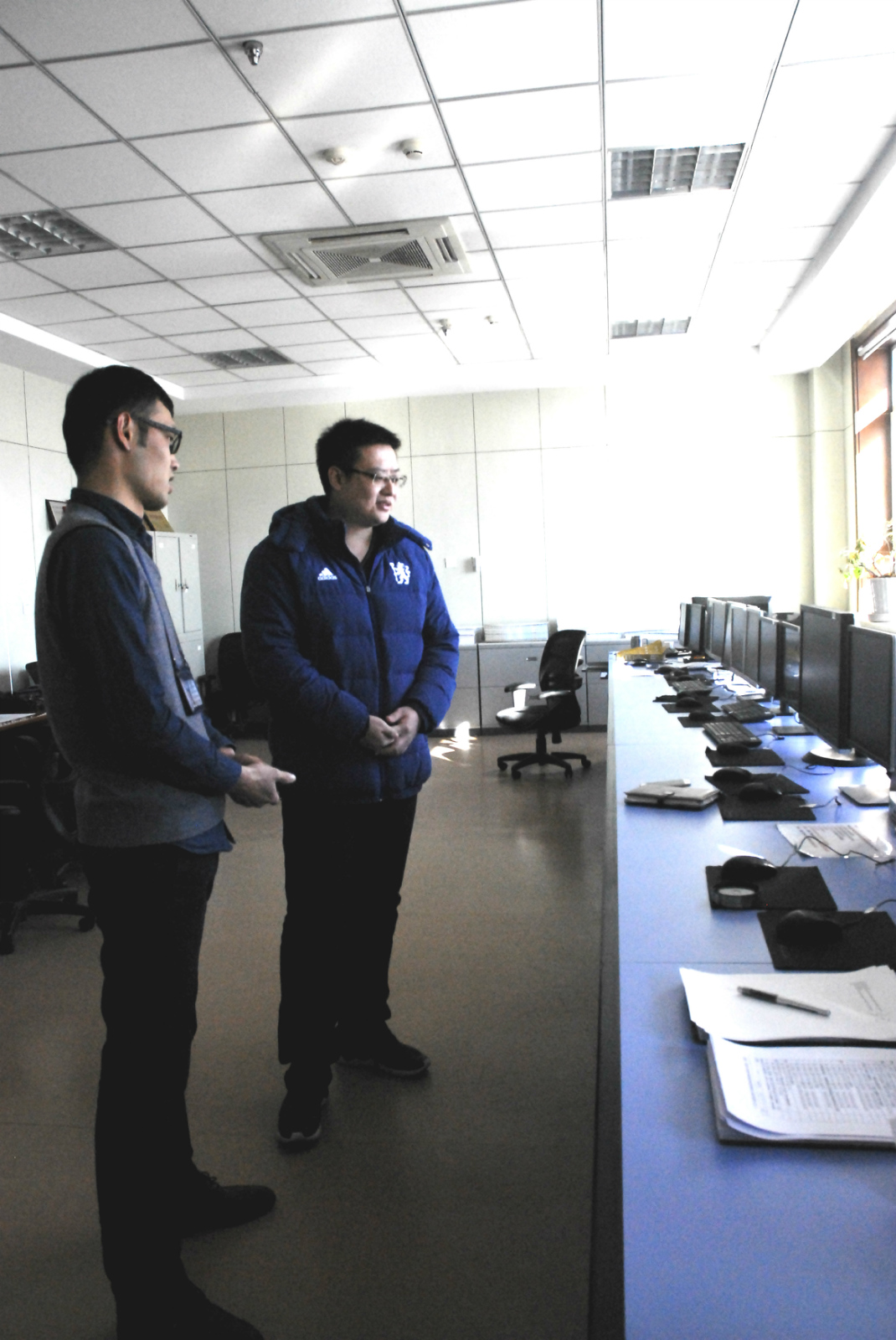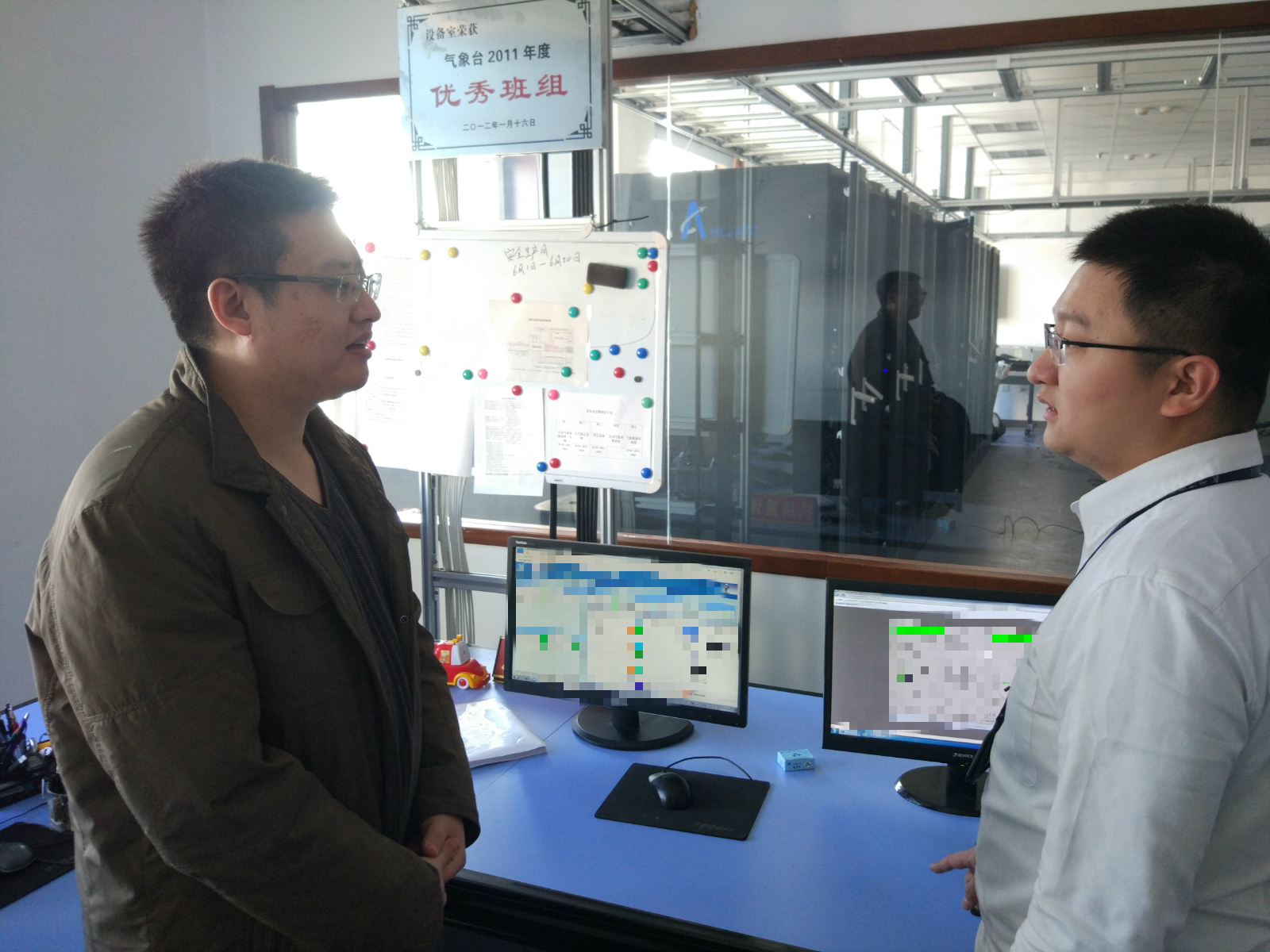 气象设备室副主任于东良为来访青年讲解,气象设备的日常维护、维修工作,保证气象设备的正常运转,对外为相关单位提供技术服务等工作。