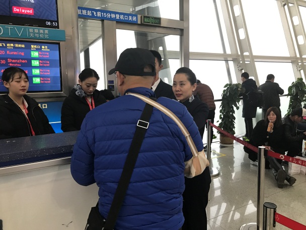 从一早出现大雾天气,地面服务部便立即对航班情况和不正常航班服务注意事项进行部署,同时要求地服部的各级干部全部在现场随时应对和处理可能出现的问题,上常白班的员工全部参与到现场保障以缓解人力紧张问题。
