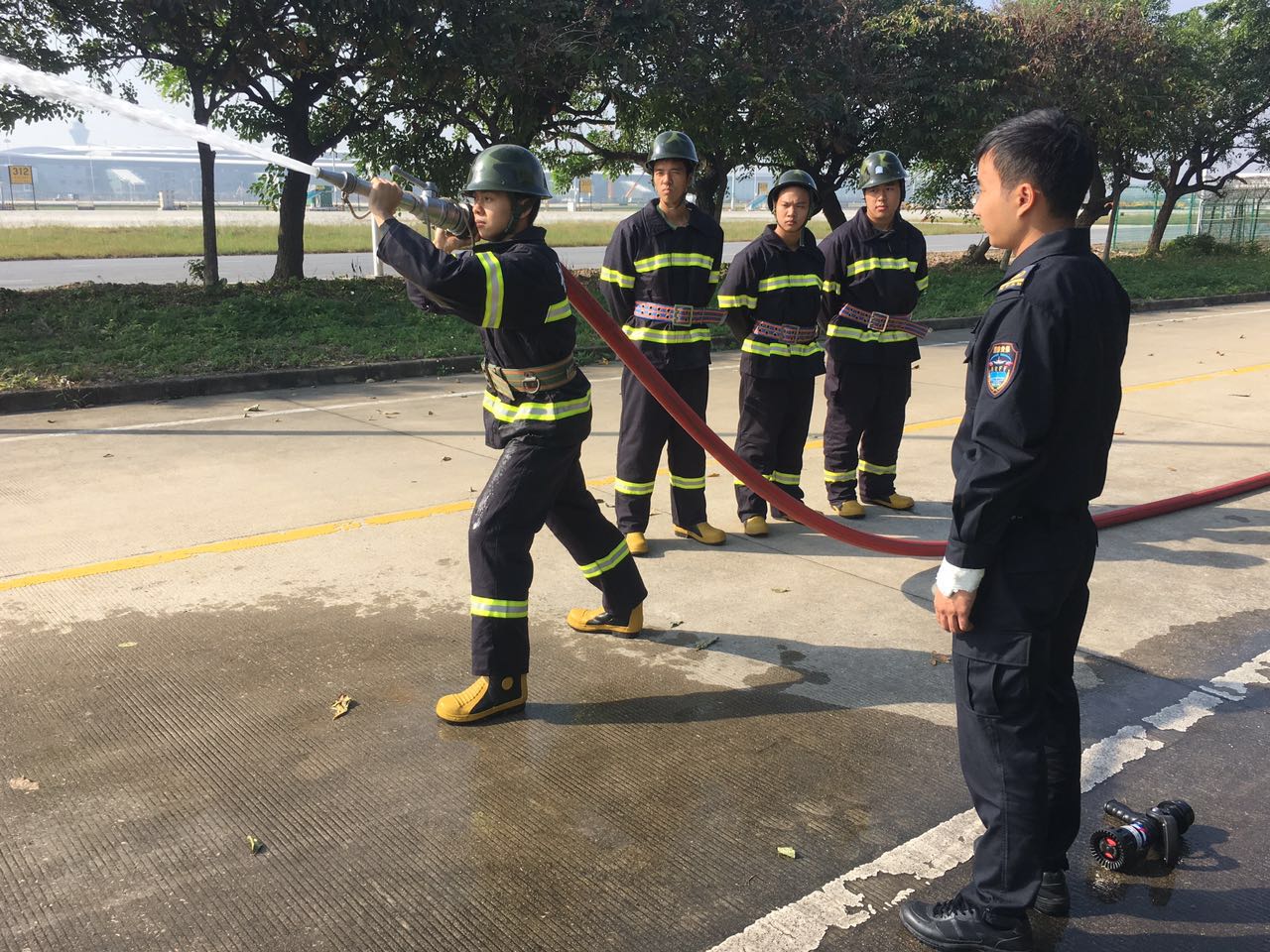 为增强大队执勤力量,12月初消防安保管理中心向六大队分配5名新队员。新队员下队后,大队按新队员岗前二次培训方案,组织开展消防员基本技能射水姿势操作培训。射水姿势共有四种,分别是立射姿势、脆射姿势、卧射姿势、肩射姿势。