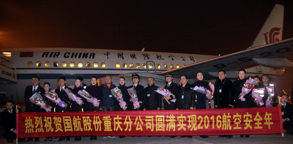 2016年12月31日的深夜寒意袭人,而在重庆、北京和广州的重庆机组人员感受到的却是浓浓暖意。当晚,分公司的领导分赴三地,为在2016年最后一天还在执行航班任务的跨年机组人员,带去了分公司的关爱和节日的祝福。随着重庆CA4570(福州回重庆)、广州CA4353(重庆到广州)、北京CA1460(宜宾到北京)航班的平稳落地,标志着分公司圆满实现了2016全年的航空安全,创造了持续安全飞行的新纪录。