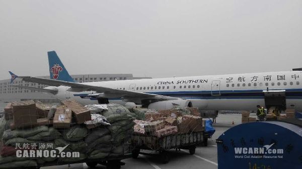 图二:南京禄口机场一批出港国内货邮正在装机!(摄影:张敏)