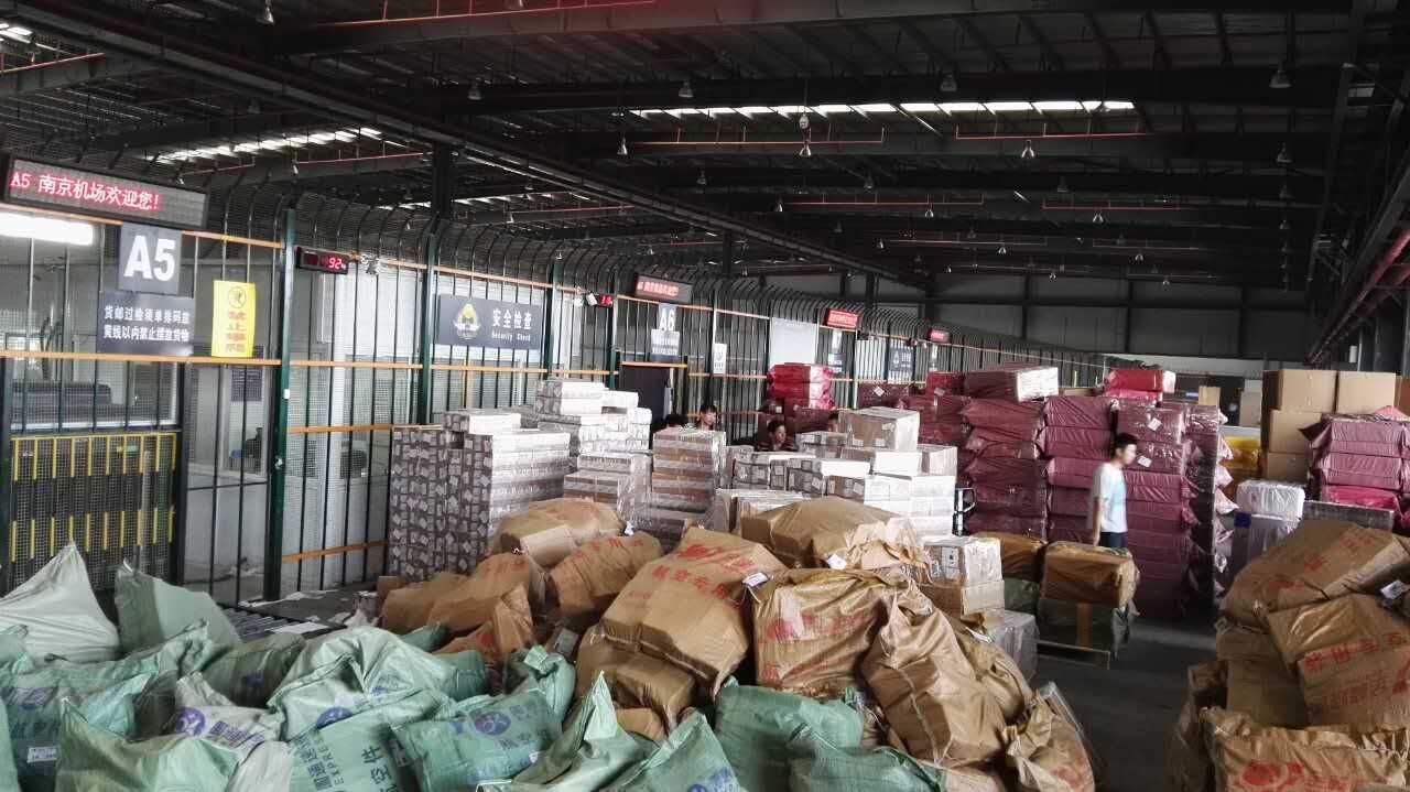 图三:南京禄口国际机场C2国内货运站:一批出港国内快件正在过检入库!(摄影:张敏)