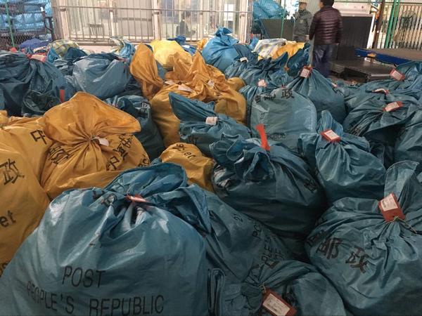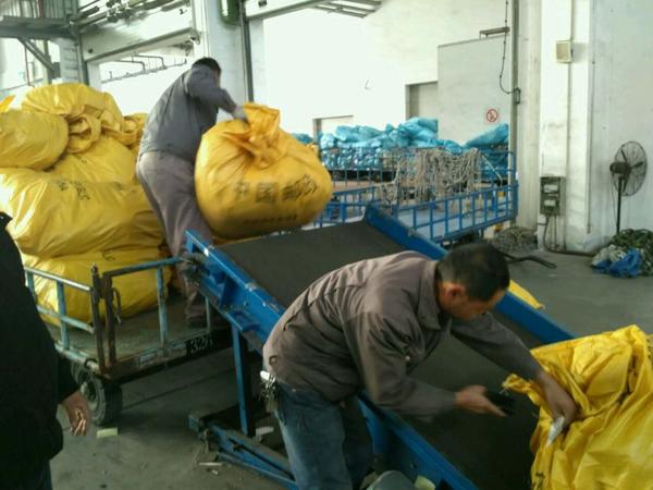 图七:南京禄口国际机场:一批出港国际邮件正在扫描入库!(摄影:张敏