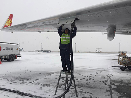 因受到极端天气影响,呼和浩特白塔国际机场当日航班大面积延误,待航班恢复正常后,当日值班加油员全部投入到机坪“战场”中,他们顶着漫天大雪和刺骨寒风,严格标准执行“三到四确认”作业程序,为航空客户提供“安全、及时、优质”的供油保障服务。晚上11时37分左右随着当日最后一架航班保障完毕,内蒙古分公司打赢了2017年第一场“雪战”。在新的一年里,全体干部员工将以更加饱满的工作热情、更加高昂的工作态度迎接“春节”、“春运”、旺季高峰等供油保障任务的挑战,为内蒙古分公司2017年再上新台阶保驾护航。