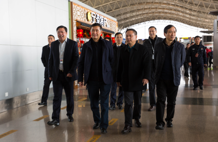 王仁洲副市长一行来到机场出发大厅,听取了郑智银总经理关于连日来机场春运旅客运输和安全保障措施的情况汇报,随后深入机场候机区、国际出发厅等区域,向坚守岗位的一线工作人员表示亲切慰问,并仔细了解机场窗口部门的春运保障工作。