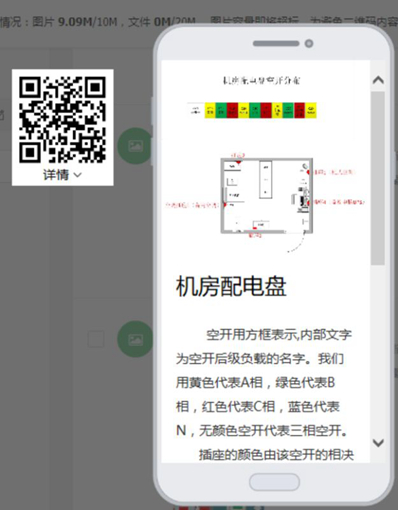 传统的解决方法是制作手册或是展板展示,但这种方式存在着内容变动更新不够及时,张贴不便等问题。随处可见的二维码为团队带来灵感,利用二维码作为数据接口进行数据展示。利用二维码生成器,生成二维码代替以前的具体信息进行粘贴,利用手机扫码直接就能获取相应图片及介绍,利用手机等小屏幕观察数据。通过二维码的方式组织台站职工培训的时候再也不需要为每个人都打印一份纸质资料了,同时利用二维码的管理后台可以实时修改二维码展示的内容同时能保持原二维码不改变,解决了有内容改变就得重新制作展板手册的难题。