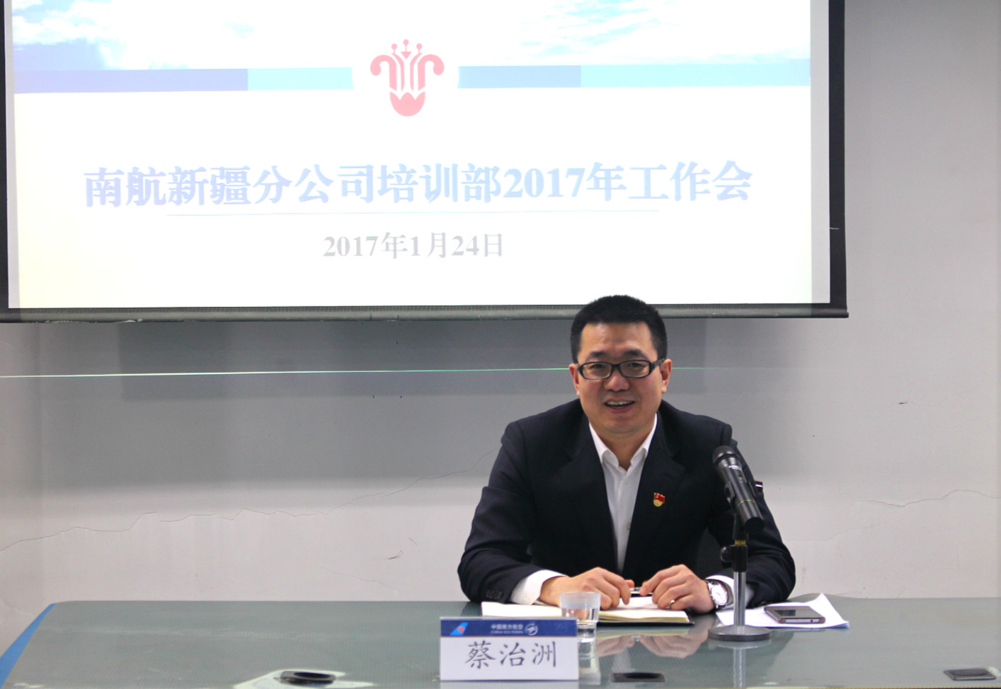 南航新疆分公司党委书记蔡治洲出席会议并作重要讲话。培训部经理沈焱作了题为《夯实发展基础 加快体系建设打造行动学习的实战式培训支撑阳光南航发展》的工作报告。