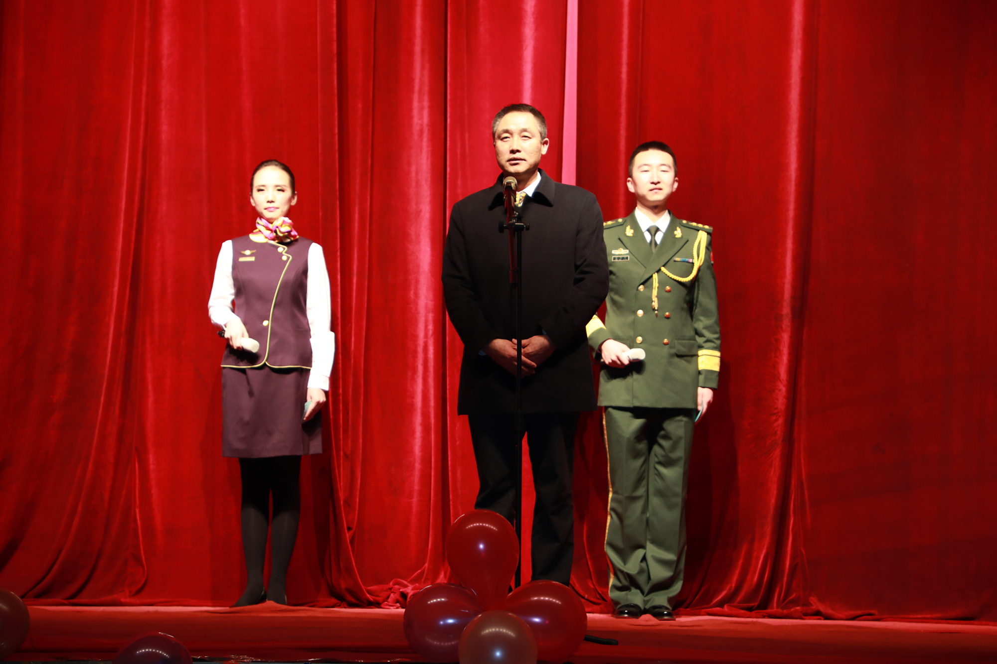 武警新疆总队第二支队支队长魏江靖,新疆民航管理局公安局局长靳杰,新疆民航管理局飞标处处长高英伟,新疆海航汉莎航空食品有限公司董事长冯永成,乌鲁木齐航空有限责任公司副总裁全勇、安全总监夏黎、客舱服务部总经理禹美宏等领导莅临晚会现场。
