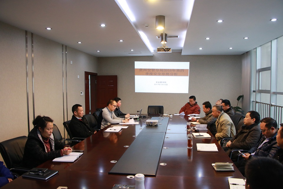 去年四季度分局安全运行总体平稳,设备运行正常率、完好率、观测错情率等均已完成安全生产指标。会议首先由杨弢副局长传达了民航局副局长李健、西南管理局副局长于国强、贵州监管局等各级航空安全工作会议精神。之后,安全部对去年第四季度的航班保障量、不正常情况统计、存在的风险进行了安全状况分析,并对2017年春运保障工作提出了建议。分局运行部门就近期的安全工作存在的风险和困难进行了补充汇报。