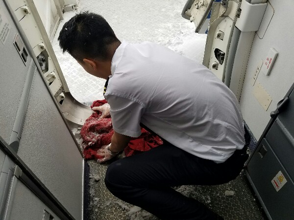 回程航班CA4364(哈尔滨至重庆),原定12:45分起飞,旅客正常时间登机。由于航班停靠远机位,旅客是通过客梯车登机进入客舱的,为防止旅客在登机进入客舱时路滑摔伤,乘务长刘嫚想了一个办法,将地毯铺在客舱门口。很多旅客看到客舱门口的“地垫”时,都对乘务组的做法给与了表扬,连声说“想得真细致”。当旅客登机结束后,客舱门由于长时间暴露在风雪中,门边已经结冰,无法关门。正在安全员带飞的新乘谭不诺,立即走到门边,蹲下去,用手抠取门脚边的冰雪。十几分钟后,门边的结冰终于被清理干净,客舱门也顺利的关闭。对于刚参加工作不到3个月的90后新乘谭不诺来说,这是他的第一个春运,对工作如此的兢兢业业,实在难得。CA4364航班后来在除冰和流量控制,等待了将近两个小时,乘务长刘嫚再次果断决定,为机上等待的旅客提供餐食,于是客舱中再次忙碌起来,客舱气氛也热闹起来。当CA4364航班终于从哈尔滨机场起飞时,乘务组和客舱中的旅客已经形成了非常融洽的互动关系,刘嫚乘务组用认真细致的服务,给旅客铺就了一条温暖的回家路。