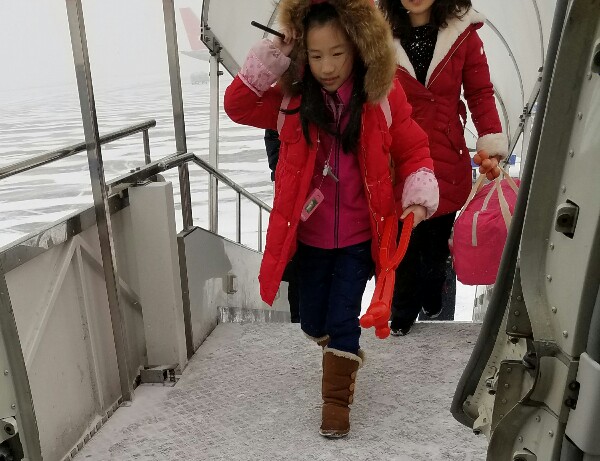 (毛竹 文 刘嫚 摄影) 2017年1月26日(农历腊月二十九),过年除夕的前一天,正是众多旅客回家的高峰期。国航重庆刘嫚乘务组执行了重庆至哈尔滨的往返航班。当航班还在飞行途中,机组和乘务组便接到了哈尔滨当地大雪天气的预警,幸运的是CA4363终于在11:40分平安降落在哈尔滨太平机场,当时哈尔滨正下着大雪,同时伴有大风,温度也下降的厉害,乘务长考虑到旅客在机舱内外温度的差异太大,容易受凉,通过机上广播几次提醒旅客在下机时注意保暖,正是这种细心和贴心的提醒,让旅客感受到一份细致的关怀。