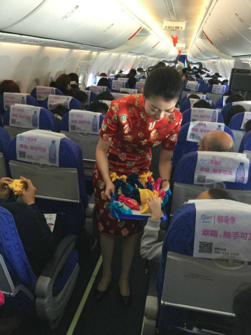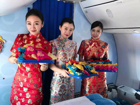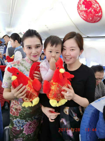“爆竹声中一岁除,春风送暖入屠苏”春节是中华民族最隆重的传统节日。为了增加节日气氛,让旅客在机上过一个喜庆吉祥年,奥凯航空对奥凯机舱进行了别出心裁的布置。有喜气洋洋的福字贴联,有可爱的卡通鸡年贴画,有传统喜庆的春节窗花,当然更少不了迎春纳福的“福”字贴,经过一番巧妙的布景,整个客舱焕然一新、年味儿十足。美丽的奥凯空姐还换上了吉祥如意的新春旗袍装。使旅客朋友们一进入客舱就能感受到浓浓的节日氛围。