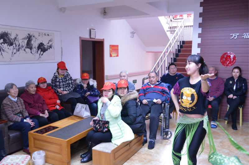 谁家老迈不孤单,最是陪伴暖人心。为了丰富养老院里老人们的精神生活,青年志愿者在养老院举办了小型联欢会:空管青年杨欣演唱《暖暖》;旅客服务部青年徐茜演唱《情意浓》;火电一公司青年郝亮演唱《向天再借五百年》;火电一公司青年张婷婷为观众表演印度舞蹈《新娘》。