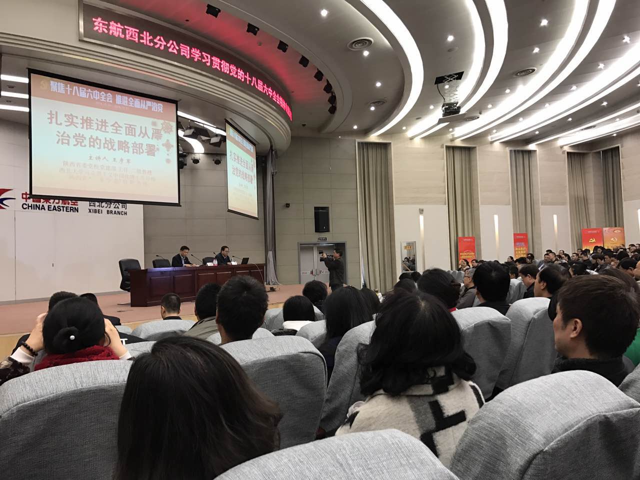为进一步深入学习贯彻十八届六中全会精神,帮助党员干部学习和理解《关于新形势下党内政治生活的若干准则》和《中国共产党党内监督条例》的内涵和重要意义,推动落实从严治党,2017年3月20日,东航技术西北分公司组织基层支部书记参加了陕西省委党校党建教研部主任王彦军教授做的题为“扎实推进全面从严治党的战略部署”的专题讲座。