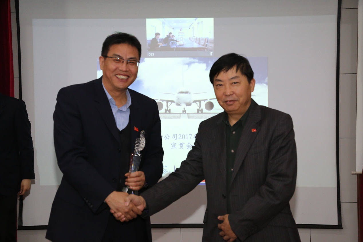 分公司领导朱春林书记、臧素翃副书记、王在宝副总经理为取得辉煌成绩做出突出贡献的优秀单位颁发了奖杯:安技部安全综合考核股份排名第一、安技部飞行时间股份排名第一、青岛飞行部飞行时间股份排名第一、济南飞行部飞行时间股份排名第一、运控部关舱门正常率股份排名第一、地服部关舱门正常率股份排名第一、技术公司关舱门正常率股份排名第一、保卫部客户投诉率股份排名第一、服管部客户投诉率股份排名第一、地服部地面投诉率股份排名第一、客舱部空中客户投诉率股份排名第一、市场部两方集团客户贡献股份排名第一、货运部客机腹舱收入股份排名第一、客舱部机上升舱股份排名第一。