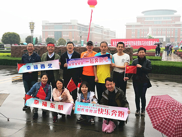 2017年4月9日,“2017杨凌国际马拉松”比赛正式开始。本次比赛东航技术西北分公司附件部赵宝峰、张长征、郭志刚3名员工代表参赛。为更好展现公司积极向上、朝气蓬勃的精神风貌,增加企业活力和凝聚力,附件部组建了一支啦啦队志愿者为东航技术西北分公司参赛队伍加油打气,营造赛场气氛。